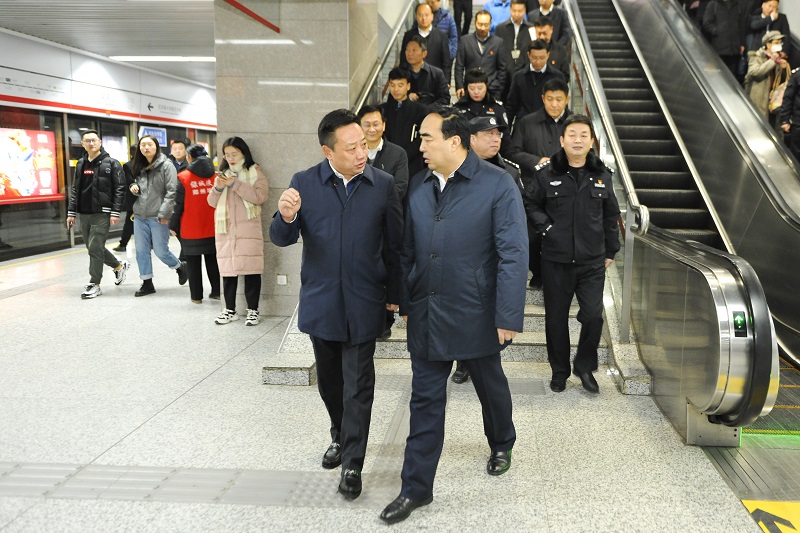 1月9日,鄭州市委常委、政法委書記于東輝一行到鄭州地鐵調(diào)研、指導(dǎo)工作,重點(diǎn)查看平安建設(shè)宣傳及正線安保措施落實(shí)情況,公司相關(guān)領(lǐng)導(dǎo)陪同。