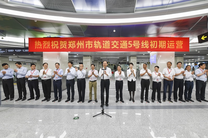 5月20日上午9時許,鄭州市軌道交通5號線初期運營活動在5號線鄭州東站站廳層舉行。省委常委、市委書記馬懿出席活動并下達鄭州市軌道交通5號線開始初期運營命令,5號線于10:16正式對外初期運營。儀式由市委副書記、市長王新偉主持。儀式上,副市長吳福民介紹了鄭州市軌道交通5號線工程概況,并對5號線各項建設成果給予了充分肯定。儀式結(jié)束后,省市領導和現(xiàn)場代表試乘體驗電客車,充分感受地鐵帶來的快速、便捷。