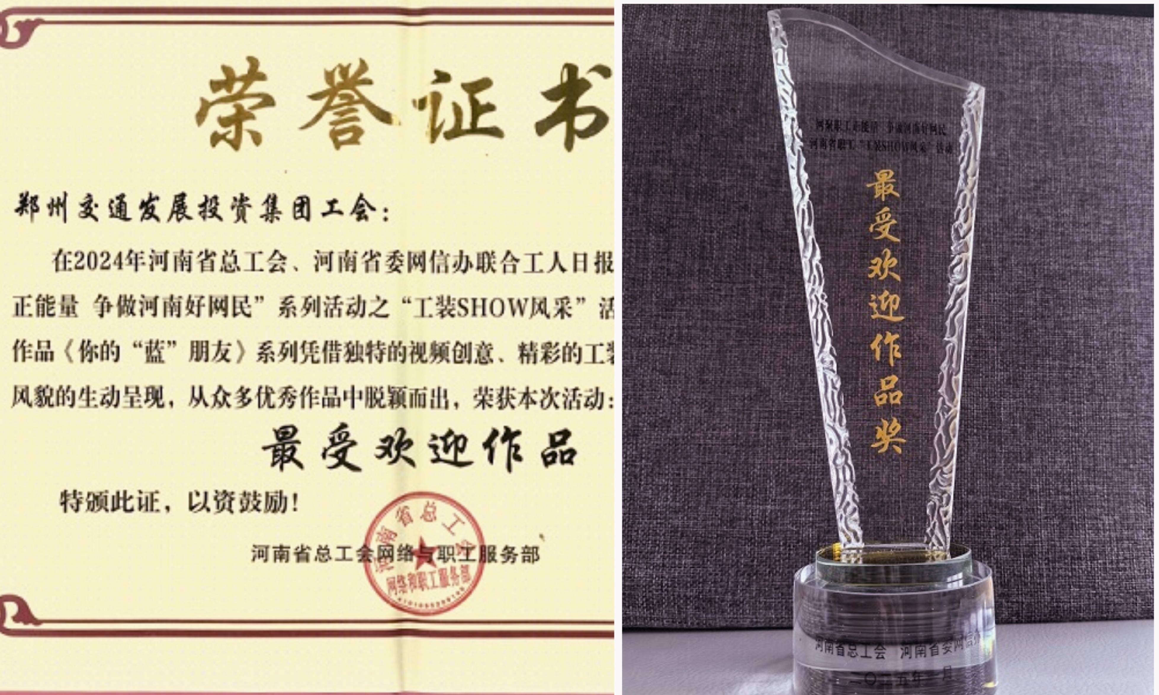 在2024年由河南省總工會(huì)、河南省委網(wǎng)信辦聯(lián)合工人日?qǐng)?bào)社共同舉辦的"網(wǎng)聚職工正能量 爭(zhēng)做河南好網(wǎng)民"系列活動(dòng)中,集團(tuán)工會(huì)選送的短視頻作品《你的"藍(lán)"朋友》憑借其卓越表現(xiàn)斬獲佳績(jī)。